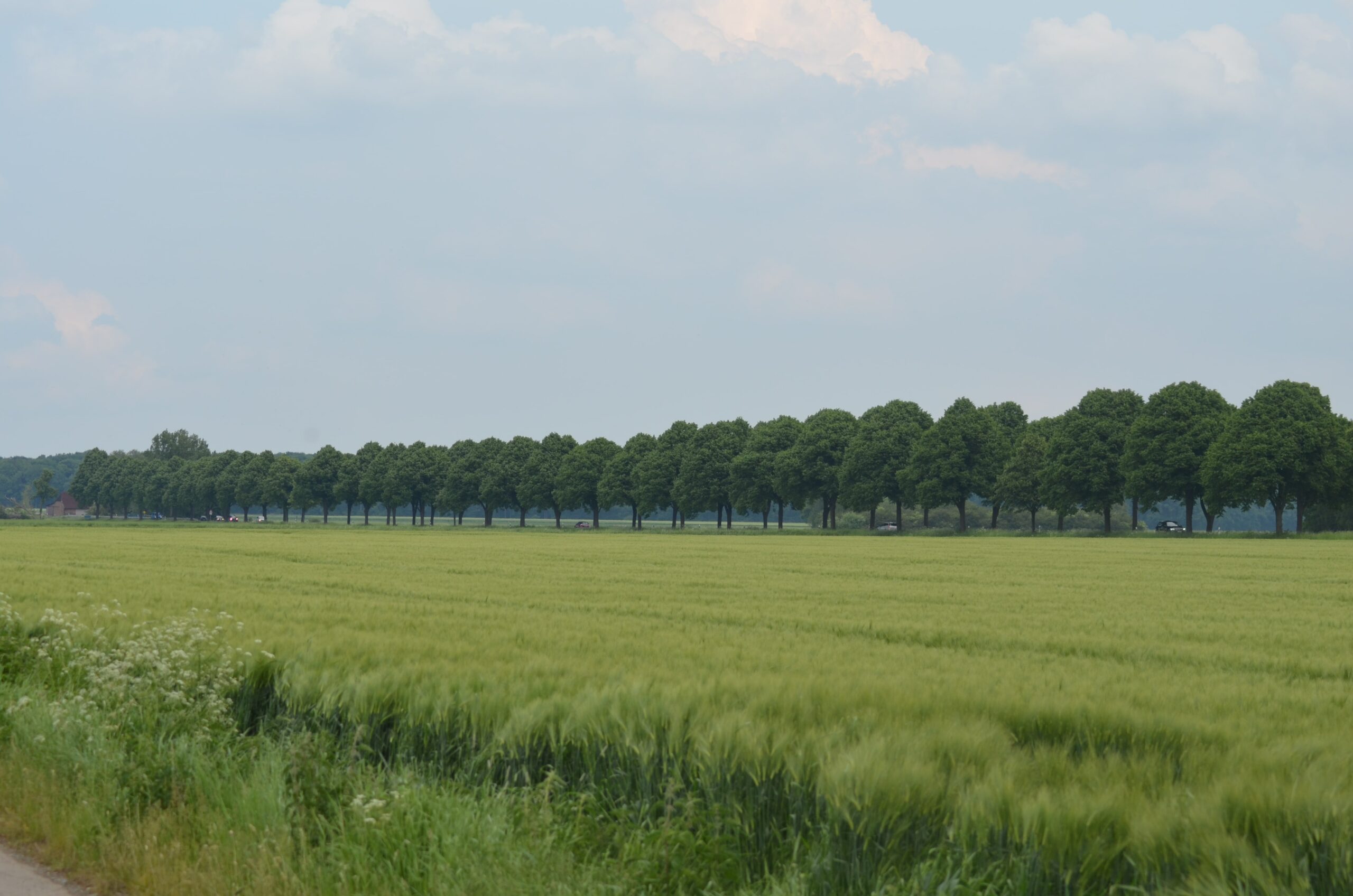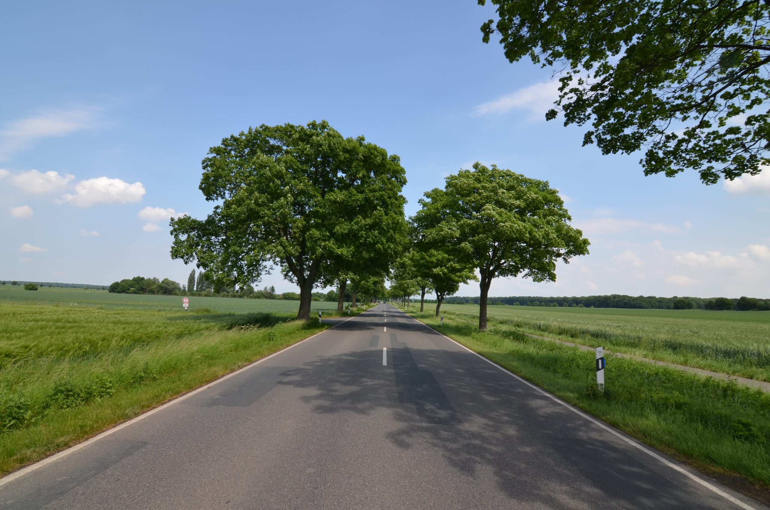 Zwischen Groß Lafferde und Bettmar verläuft die Bundesstraße 1, die von Bäumen unterschiedlicher Art gesäumt wird.