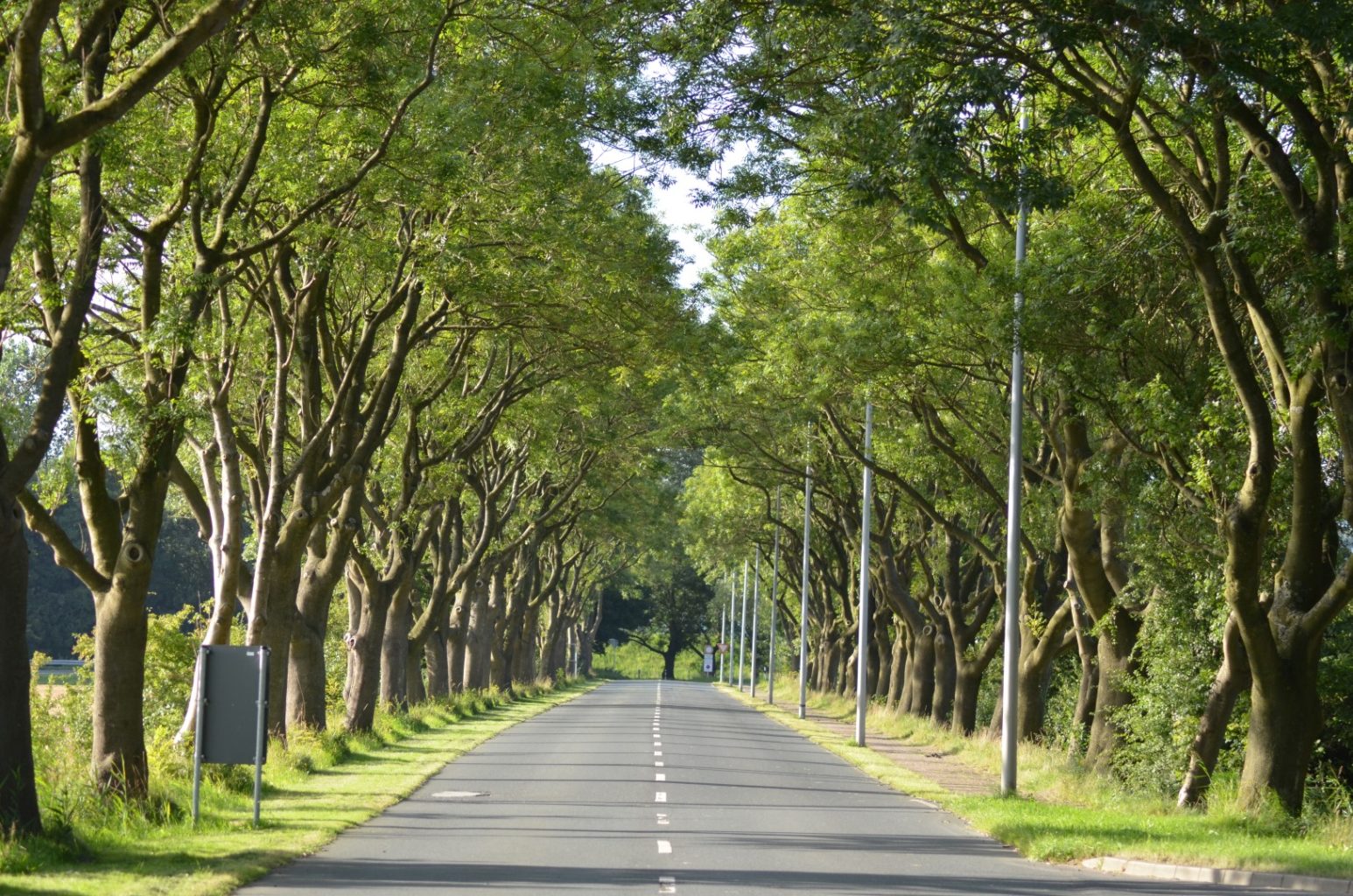 Zudem möchten wir mit dieser Auswahl auf das Eschentriebsterben hinweisen, dass die heimische Esche (Fraxinus excelsior) massiv in ihrer Verbreitung und Entwicklung beeinträchtigt. Das Eschentriebsterben konnte in Deutschland erstmals 2002 beobachtet, ein Erreger 2007 nachgewiesen und 2010 identifiziert werden: Das Falsche Weiße Stängel-becherchen (Hymenoscyphus pseudoalbidus) kommt ursprünglich aus Japan, wo es die Mandurische Esche befällt, und hat sich inzwischen über fast ganz Europa ausgebreitet. Während in Japan eine wechselseitige Anpassung (Koevolution) stattgefunden hat, entsteht bei der heimischen Esche durch den Befall mit dem Pilz ein chronischer oder letaler Krankheitsbefall. Ab Mitte Juli treten an den Blättern der Esche braune Nekrosen auf, die die Blätter welk werden lassen und letztendlich zu einem verfrühten Blattfall führen. Ältere Eschen können diese Kronenauflichtung durch Ersatztriebe und eine Verbuschung der Krone auffangen, während bei jungen Eschen die Nekrose schnell stammumfassend wird und die Pflanze somit binnen weniger Jahre komplett abstirbt. Ein kleiner Prozentsatz der Eschen zeigt jedoch eine Resistenz, sodass möglicherweise zukünftig eine unanfälligere Eschengeneration entstehen könnte. Die Allee in Wilhelms-haven wies zum Zeitpunkt der Begutachtung allerdings noch keine Schäden auf.