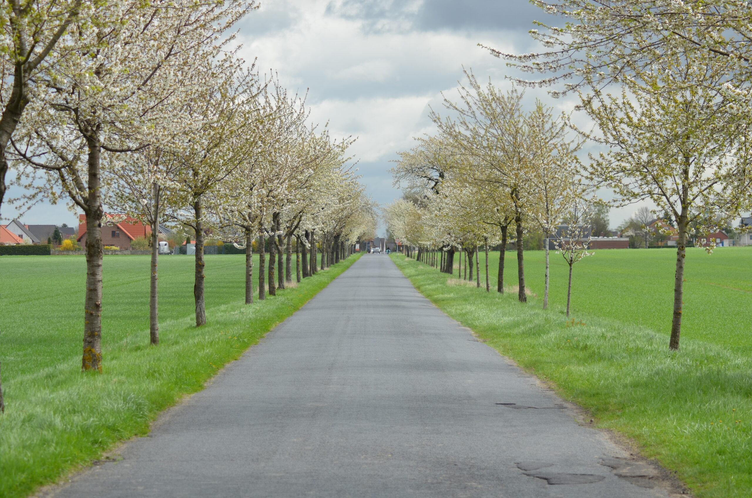 Vogelkirschen, oder auch Süßkirschen genannt, kennt wohl jeder. Kirschbäume als Alleen sind hingegen selten. In der Alleendatenbank des NHB sind niedersachsenweit nur 33 Kirsch-Alleen erfasst und die hier gezeigt ist die einzige aus dem Landkreis Peine. In Blüte steht sie im April, Früchte sind im Juni und Juli zu erwarten.