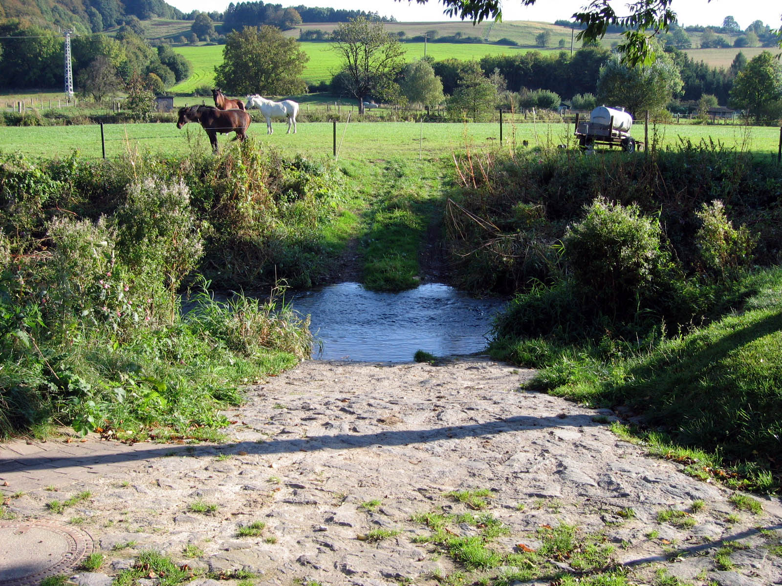 Furten sind selbst an untergeordneten Wegen infolge zunehmender Verrohrung von Fließgewässern selten geworden.